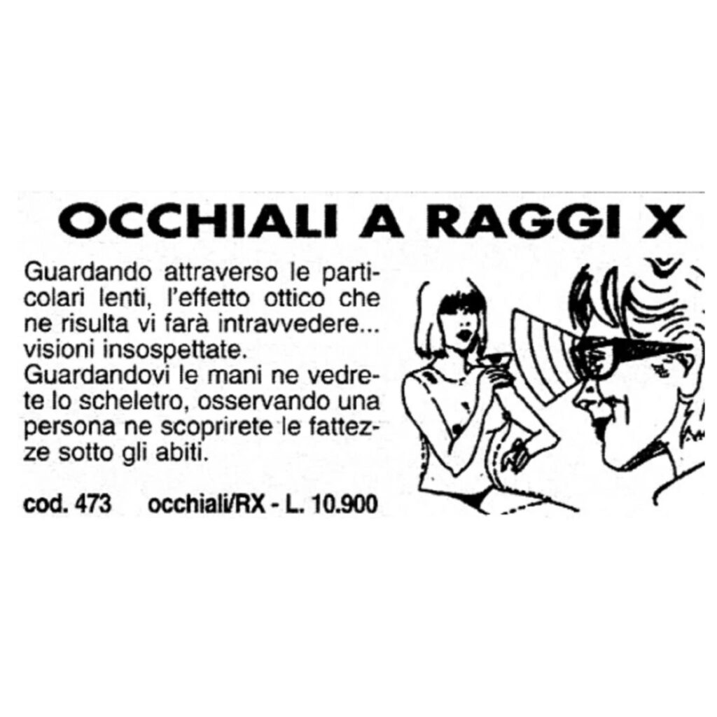 Tra le pagine di fumetti degli anni ‘80 e ‘90, c’era una pubblicità impossibile da ignorare: gli “Occhiali a raggi X”. L’annuncio prometteva visioni straordinarie, illusioni da supereroe, misteri svelati con una semplice occhiata. Bastava poco più di diecimila lire per ottenere – si diceva – un potere straordinario.